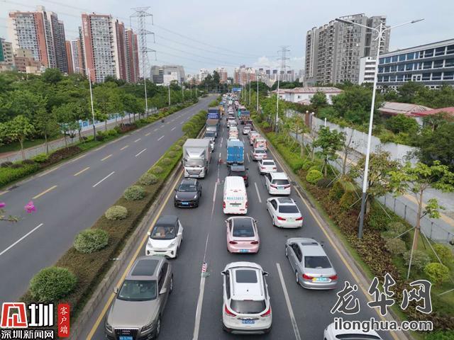 目前,观天路双向车道只有一侧(东向,往观澜大道)可以通行。