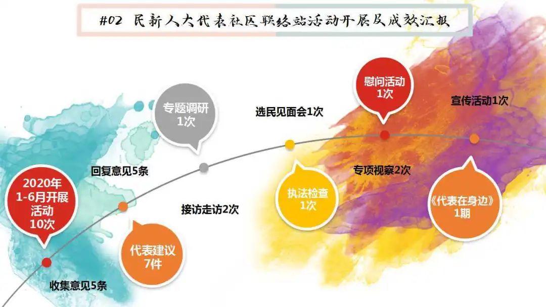 自联络站成立以来,截至2020年6月,共开展视察调研活动35次,走访接访43次,慰问活动、代表议事会、代表与选民见面会、代表述职会、代表讲堂、代表宣传、执法检查等活动35场,共收集代表建议7件,收到群众意见57条,已回复57条。