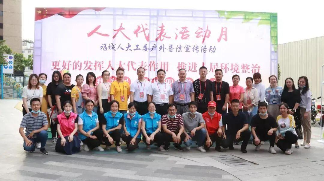 7月15日,福城街道人大工委组织开展“人大代表活动月”户外普法宣传活动。彭耀春、刘海存等15位区人大代表参加活动。