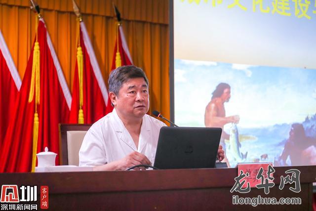揭牌仪式结束后,龙华区委召开理论中心组(扩大)学习会,由单霁翔院长作专题讲座,从国土、城市、区域、建筑、室内艺术等五个方面展开授课。单霁翔院长结合自身在故宫博物院的文物保护工作以及在全国各地的调研经历,进行经验分享,为龙华区城市文化建设与文化遗产保护工作带来了新的启发和帮助。