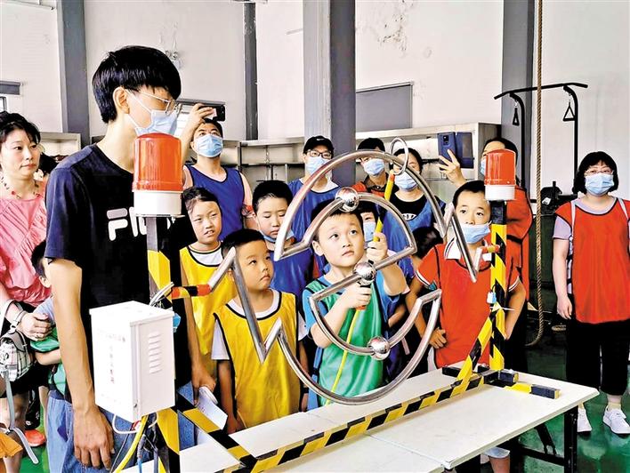 孩子们参加电器安全之穿越火线游戏。