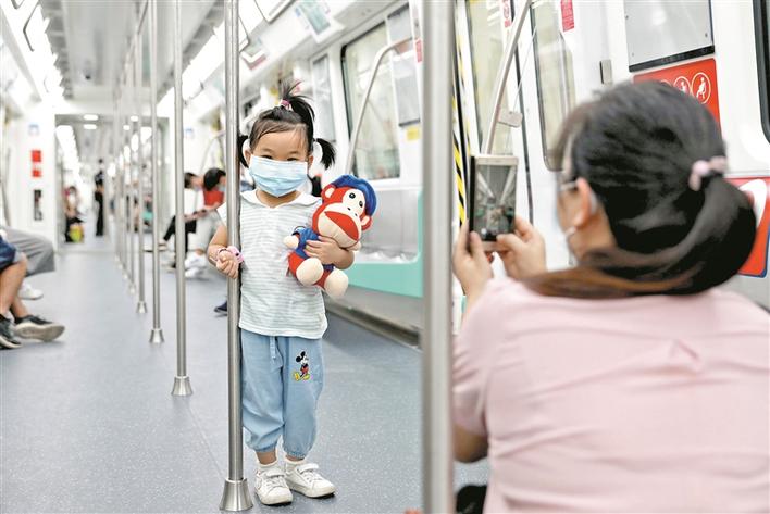 小朋友带着布娃娃一起体验6号线“首班车”。