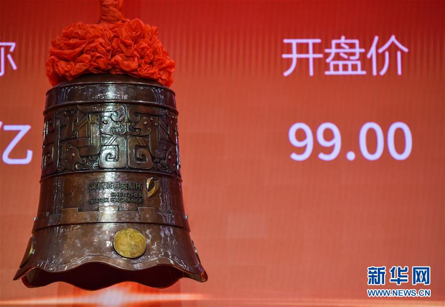 8月24日在深圳证券交易所举行的创业板改革并试点注册制首批企业上市仪式上拍摄的敲钟仪式。