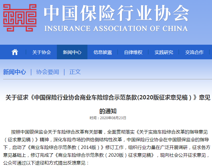 央视财经2020年8月27日讯 车险成为今年保险监管的重点领域。按照银保监会关于车险综合改革有关部署,中国保险行业协会发布《商业车险综合示范条款(2020版征求意见稿)》,向社会公开征求意见。