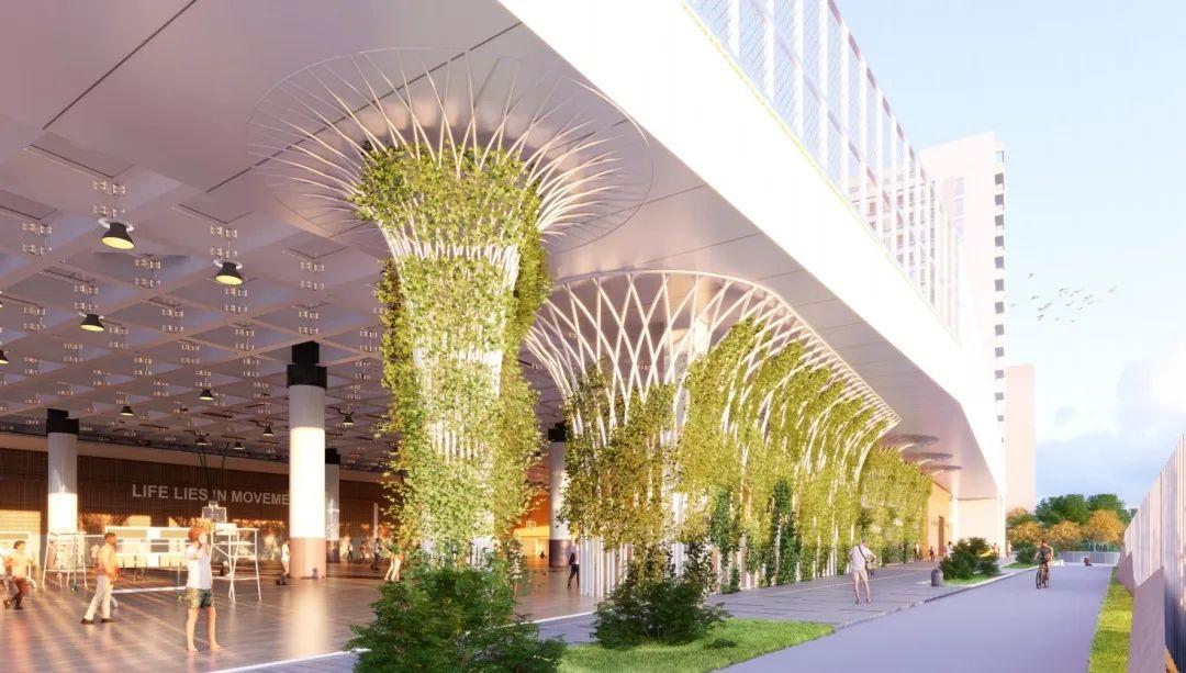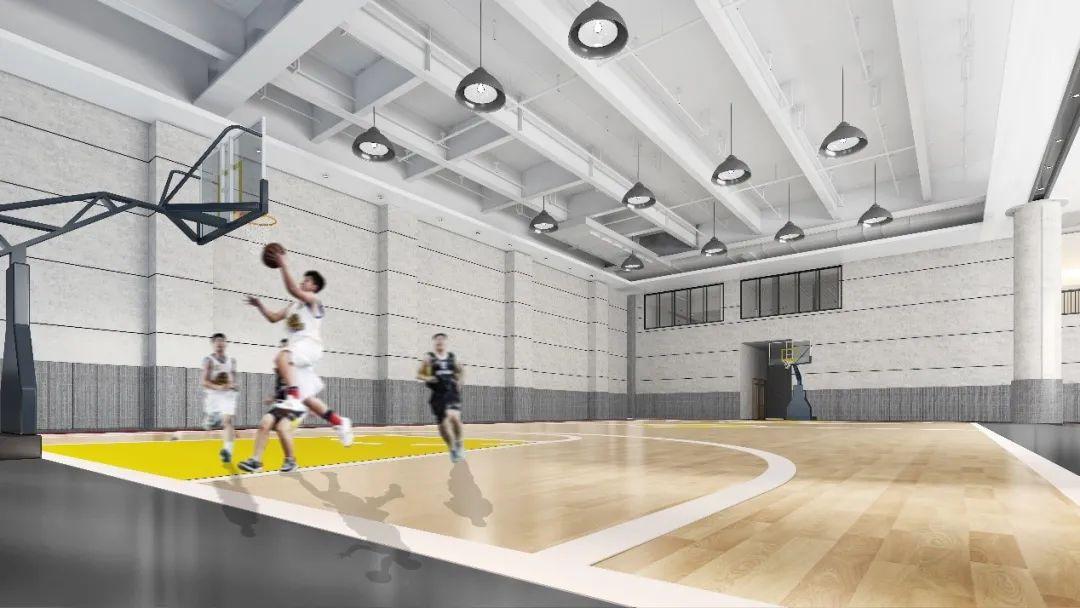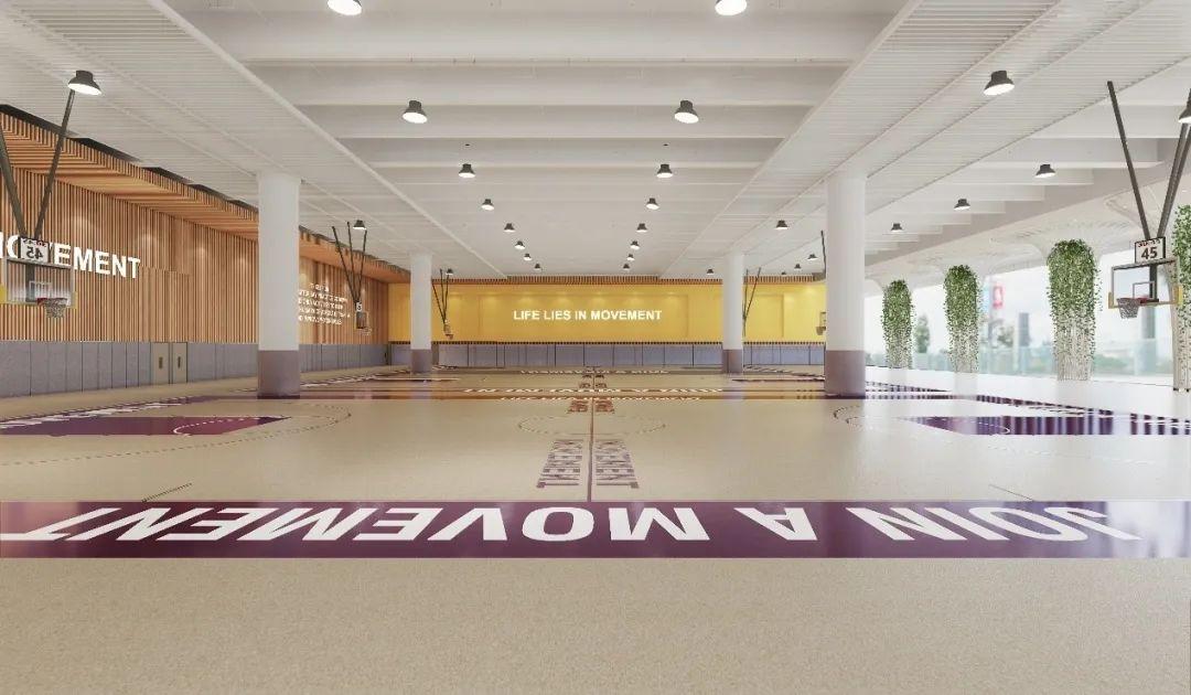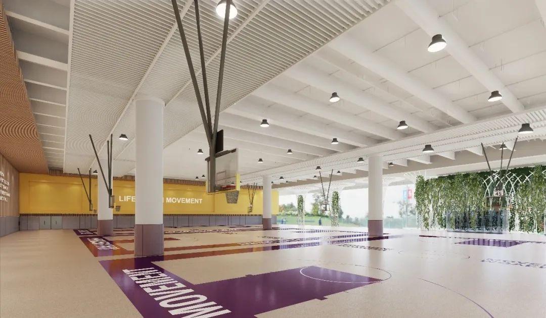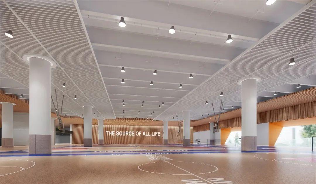 项目采用涂料加空中绿植的做法,保持篮球场的通风,同时空中绿植提供一定程度的遮阳。