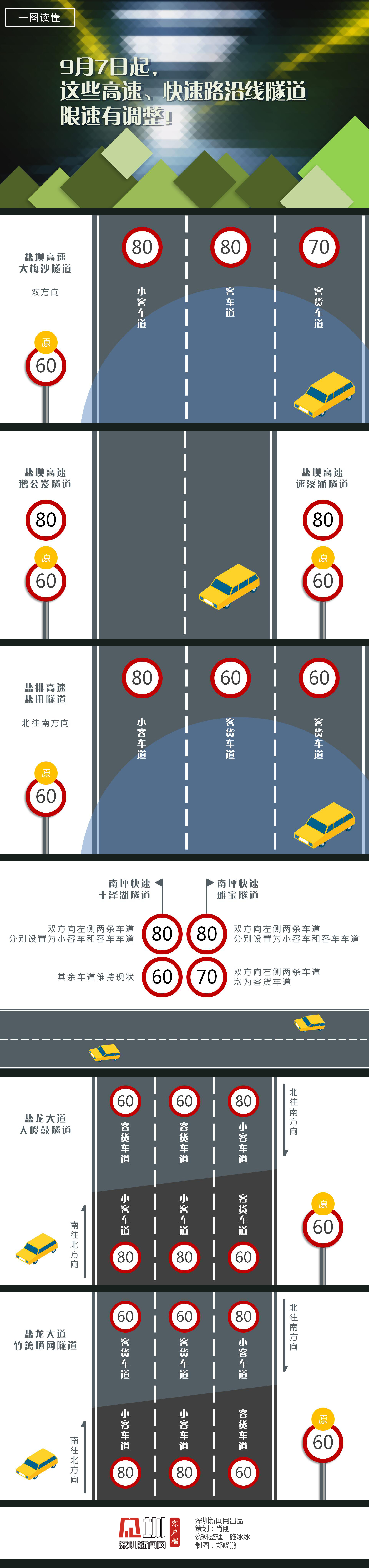 深圳交警决定自2020年9月7日0时起对市区盐坝高速、盐排高速、南坪快速、盐龙大道车辆行驶最高限速值(简称“限速”)进行调整。