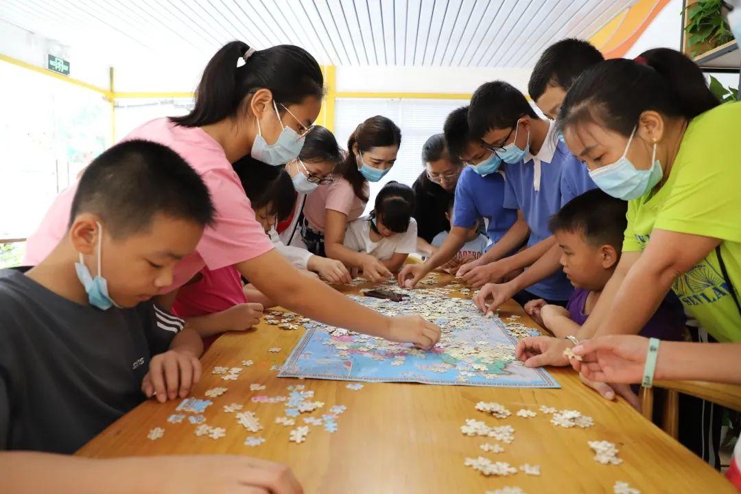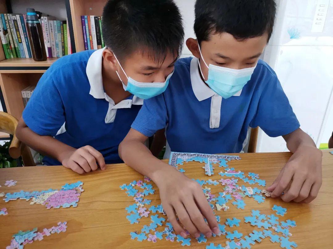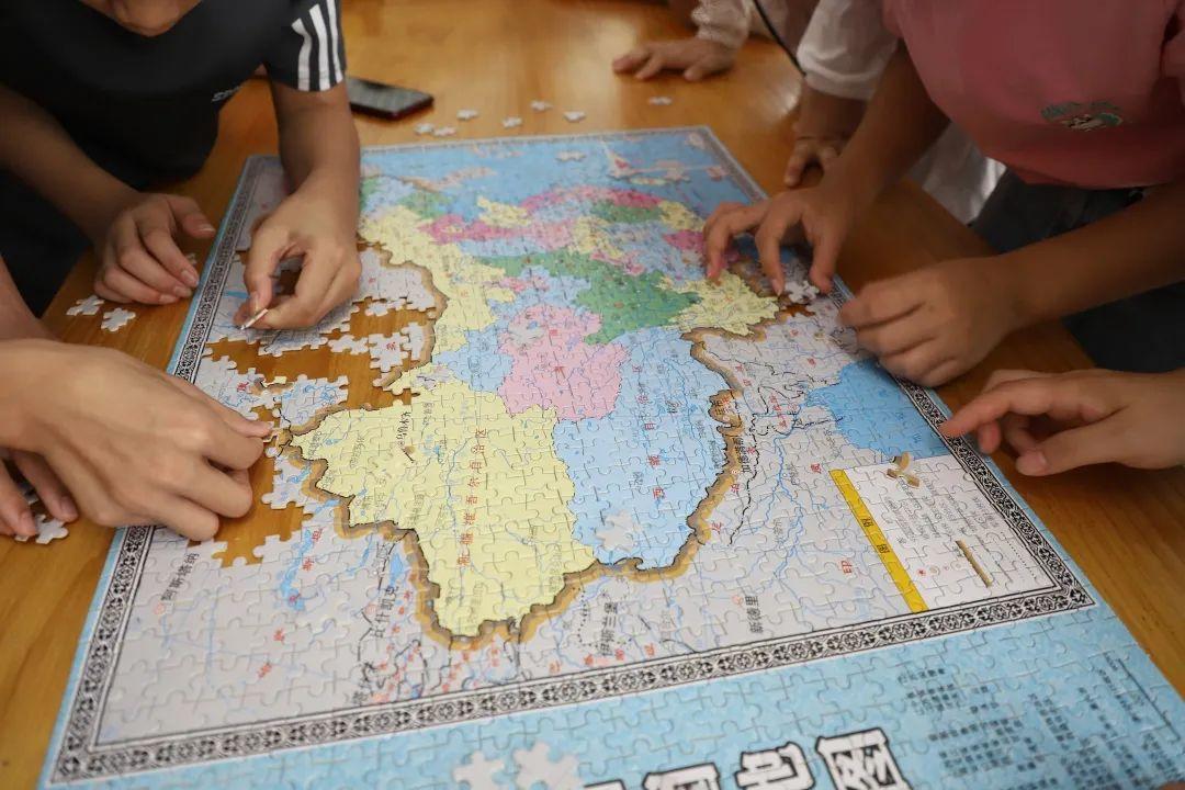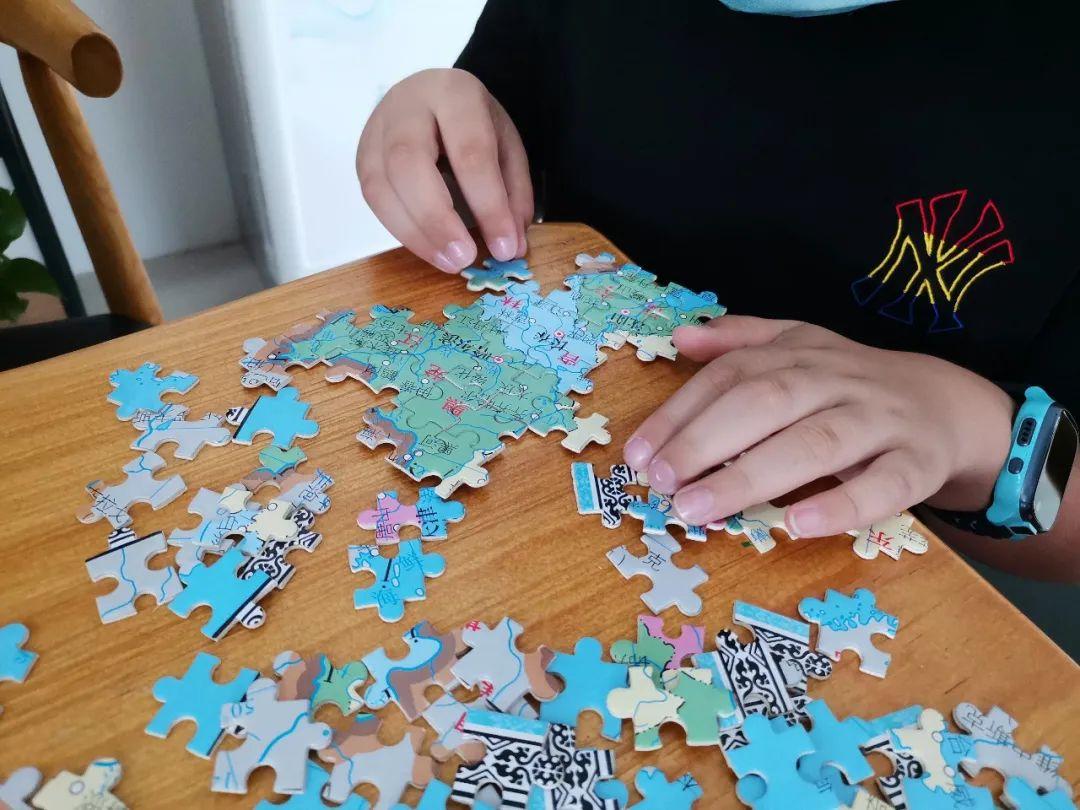 在拼地图、观察地图的过程中他们收获了一份成长