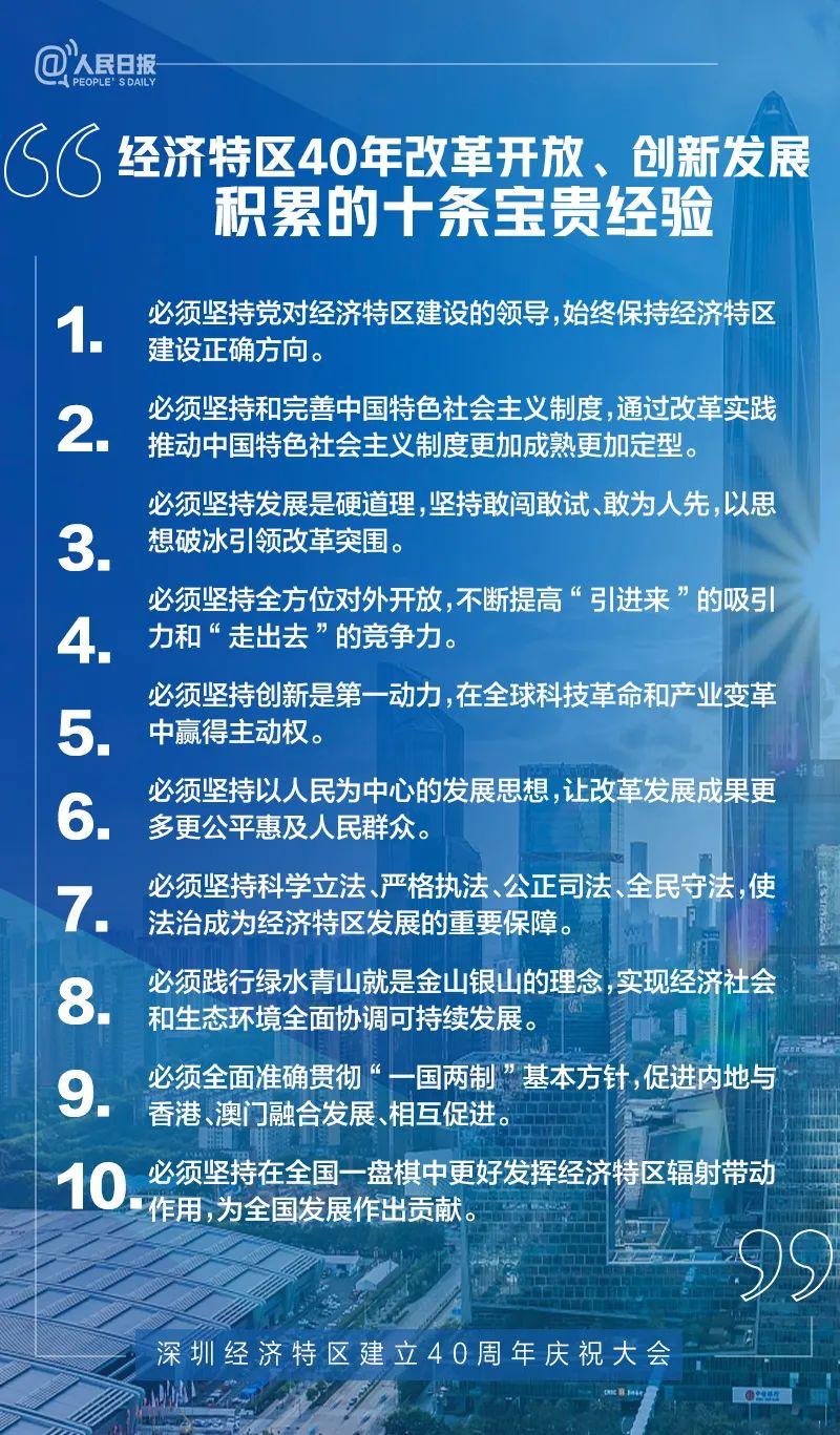 习近平说,深圳等经济特区40年改革开放实践,创造了伟大奇迹,积累了宝贵经验,深化了我们对中国特色社会主义经济特区建设规律的认识。