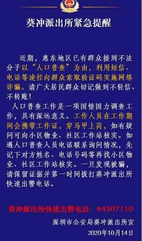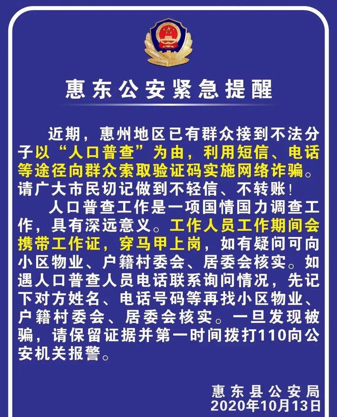 小伙伴们最近有没有收到这样的短信第七次全国人口普查工作已经正式开始了这几天各个社区陆续有工作人员上门登记街上也随处可见宣传横幅然而利国利民的人口普查工作也能被不法分子利用成为他们诈骗的借口近期广东某地区出现不法分子以“人口普查”为由利用短信、电话等途径向群众索取验证码实施网络诈骗。其实只要牢记这一点 人口普查员绝对不会向群众索要微信、支付宝、银行卡及密码、短信验证码下面几个小知识点也可以帮助大家分辨真假