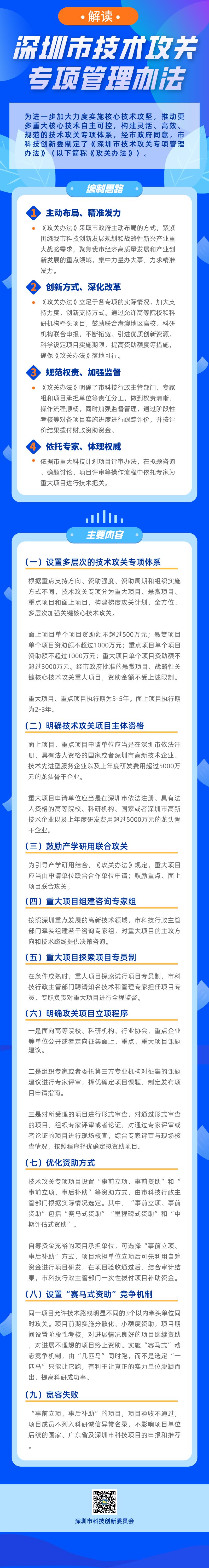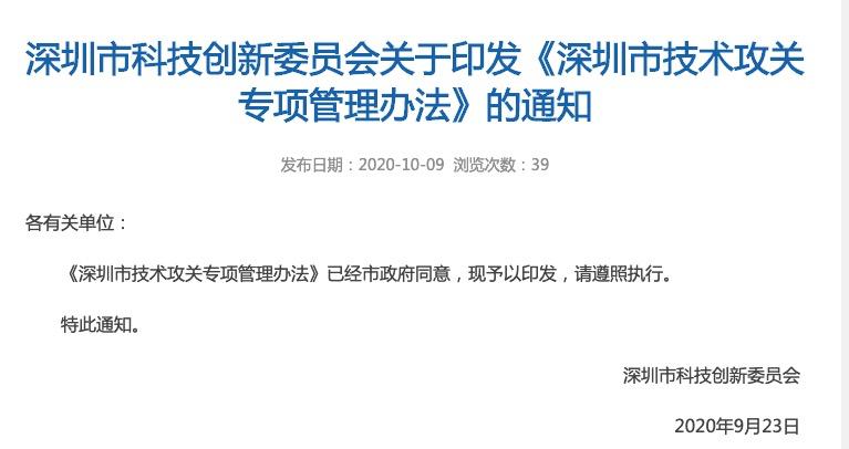 由深圳市科技创新委员会制定的《深圳市技术攻关专项管理办法》(下称《办法》)印发实施。