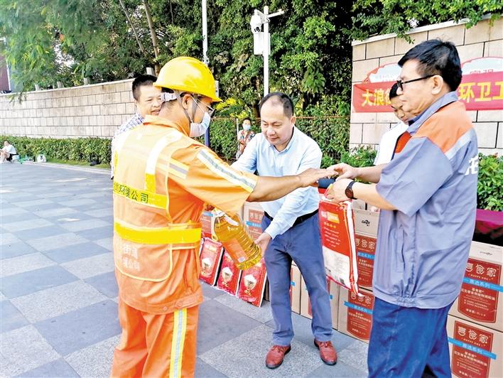 为给全区每位环卫工人送上一份暖心的慰问品,龙华区城市管理和综合执法局于一个月前便开始提早准备,定制了6817份“环卫工人节”节日礼包,为全区环卫工人送上可随身携带的保温杯,以及牙膏、牙刷、香皂、毛巾等生活必需品,借此表达对环卫工人的关心和感谢。同时,各街道均开展了慰问环卫工人活动,向每位环卫工人发放米、油等节日慰问品。