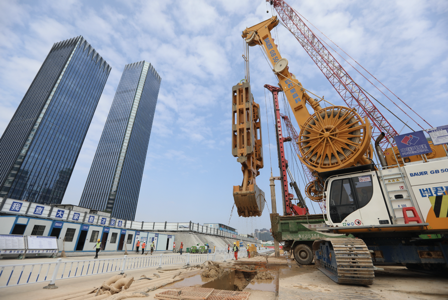 穗莞深城际铁路是粤港澳大湾区城际铁路网广深主轴的重要组成部分,机场至前海段是深圳首条自主投资建设的城际铁路。线路起于穗莞深城际深圳机场站,出机场后下穿西湾至宝安大道,沿宝安大道地下敷设,至前海综合交通枢纽,设终点站前海站。线路全长15.18千米,全线地下敷设,设西乡、宝安、前海3座地下车站。其中,前海站是全线关键性工程,也是最早开工、建设最快的站点。施工单位中国水电七局相关负责人表示,前海站为地下四层岛式结构车站,具备超长超宽超深的特点,“前海站施工中还面临着复杂地质条件这一难题。”