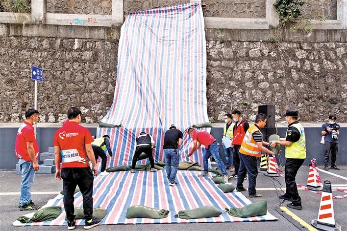 演练模拟受持续强降雨影响,大浪街道某机械厂内东侧挡墙突发垮塌。按照《龙华区危险边坡垮塌突发事件应急预案》,整个演练围绕发布预警、巡查监测、上报响应、先期处置、成立指挥部、风险排查、应急处置、工作汇报、应急结束等步骤展开。险情上报后,大浪街道应急力量迅速赶到现场进行先期处置工作,获准启动龙华区危险边坡垮塌突发事件应急预案后,区应急力量迅速集结成立现场指挥部,各指挥小组各司其职,快速开展应急抢险救援工作。