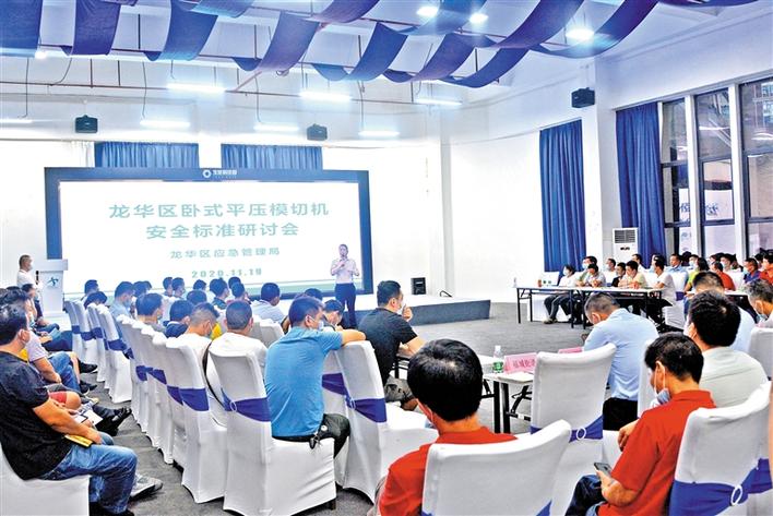 龙华新闻讯(记者 宋彪 通讯员 杨秋女 陈麟 文/图)纸皮加工企业一般拥有卧式平压模切机,纸皮加工企业发生机械事故多与之有关。为进一步加强这类企业的安全管理,压发事故,制定卧式平压模切机安全管理标准,11月19日下午,龙华区应急管理局在宝能科技园七栋阳光厅,组织召开全区卧式平压模切机安全标准研讨会。龙华区应急管理局、相关专家,各街道相关负责人以及全区106家卧式平压模切机使用企业的主要负责人、负责并熟悉该类设备操作安全管理的负责人共134人参会。
