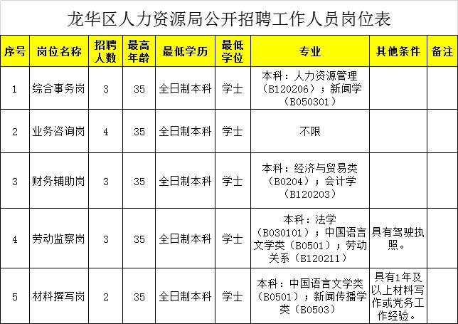 1.龙华区人力资源局公开招聘工作人员岗位表