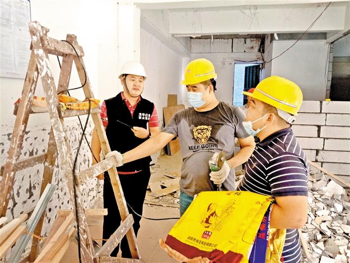 执法人员检查小散工程施工现场。