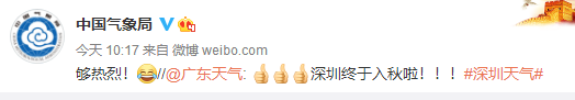 @广东天气和@中央气象局纷纷发来贺电。