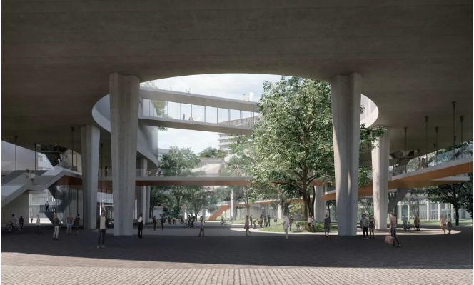 方案提取当代音乐艺术校园建筑内具有共享特质的多种教学及生活空间,将其聚合于校园中心一个连续的环状空间“Union Loop”,充分鼓励师生、学科及城市社会之间形成自由的学术交流、文化共享的氛围。方案尝试在校园空间内建立不同层级的公共性,实现多元化音乐艺术校园文化的氛围,以及校园文化设施、教育成果在城市层面的共享。针对周边自然条件,采取剖面上的空间策略来实现远山近水的绿色生态校园概念。