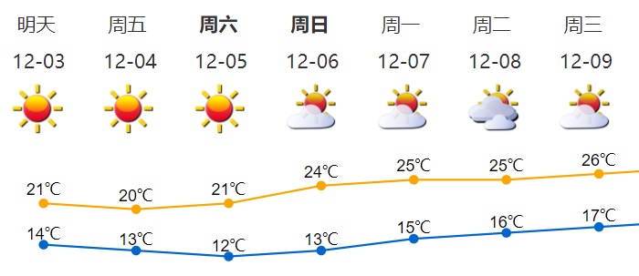 5日早晨最低气温将降至12℃左右,早晚较冷;