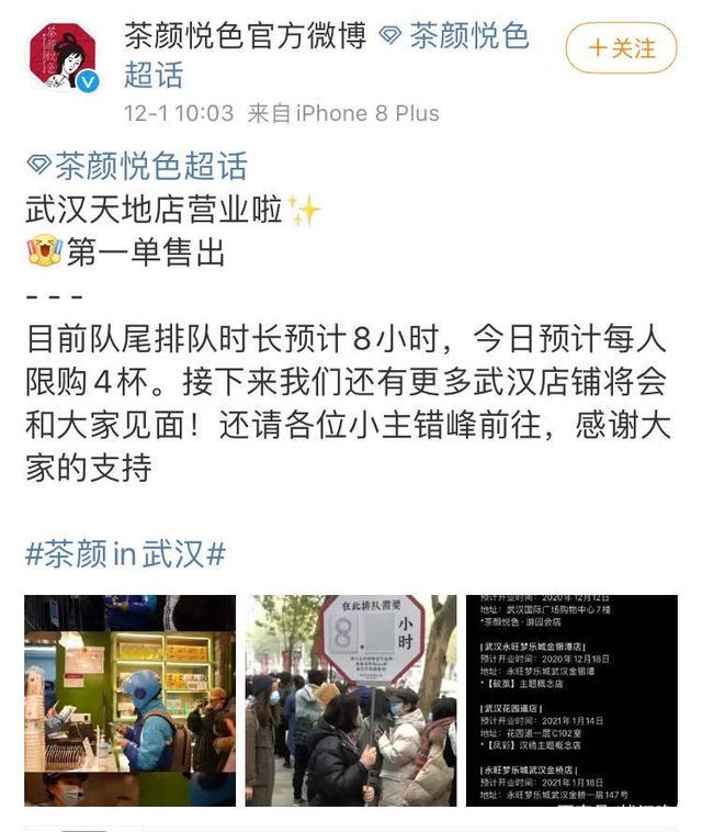 12月1日上午10时,武汉首家茶颜悦色在武汉天地开门营业,而从早上7时,门口就排起了长长长队,很快冲上热搜第一位!