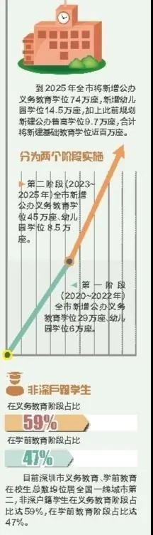 ①日前,市委市政府发布了《关于加快学位建设推进基础教育优质发展的实施意见》,明确提出,到2025年全市将新增公办义务教育学位74万座,新增幼儿园学位14.5万座,加上此前规划新建公办普高学位9.7万座,合计将新建基础教育学位近百万座。