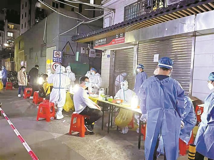 ▲工作人员连夜奋战,对片区居民开展核酸检测。深圳晚报记者 易芬 通讯员 张一鎏 李慧 摄