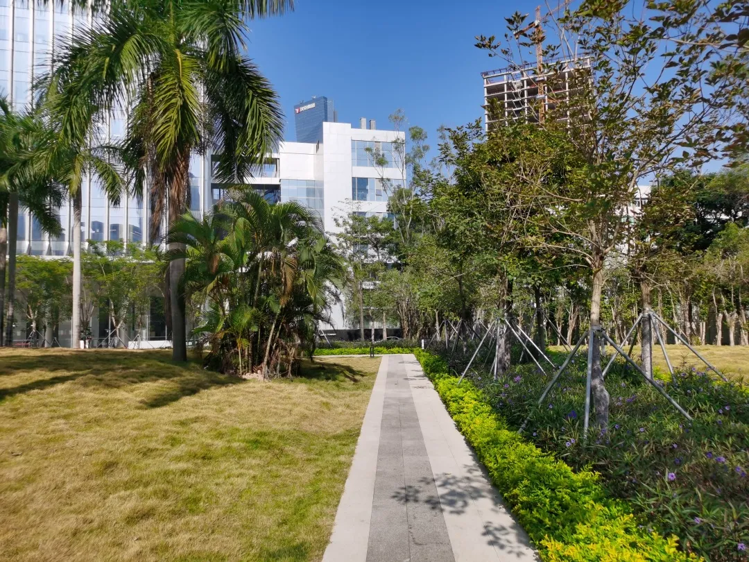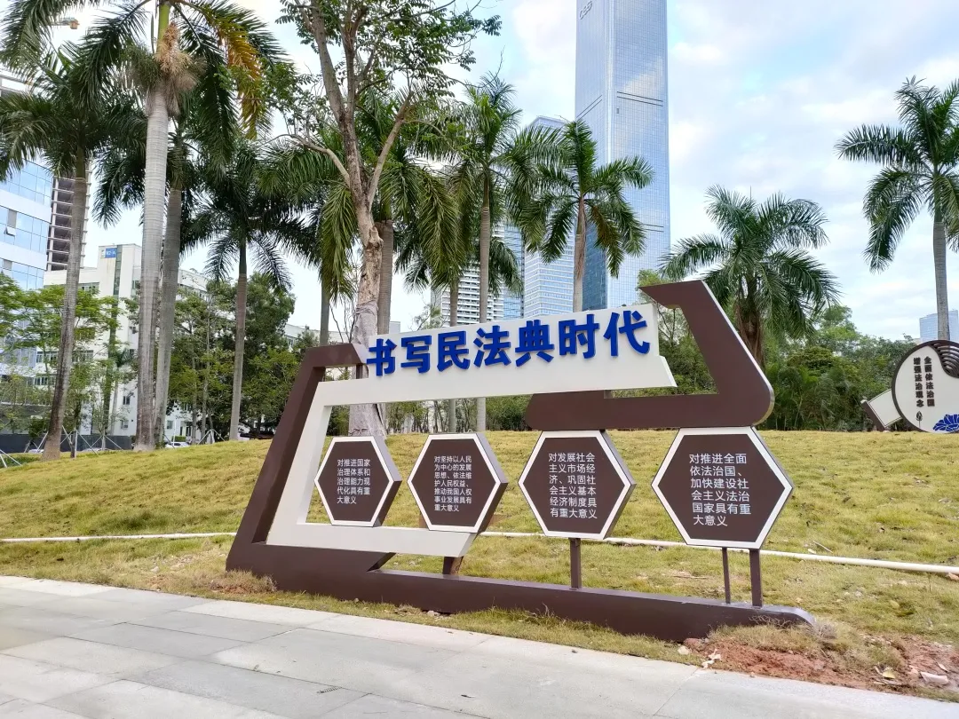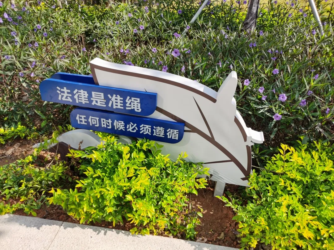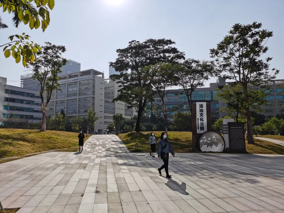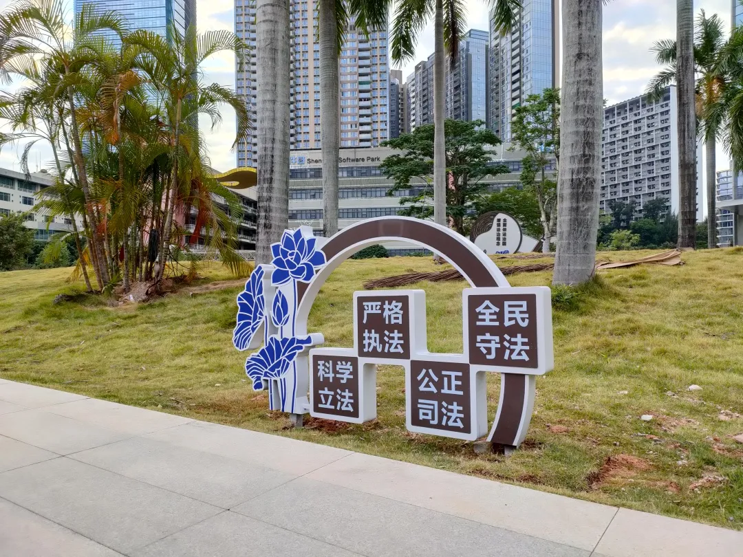 12月2日上午, 高新园片区阳光明媚,凉风徐送。 位于达实大厦大门对面的公园广场上, 随着一条喜庆的红绸被揭下, 粤海街道法治文化公园正式揭牌启用。 粤海街道法治文化公园开园 粤海街道法治文化公园位于高新南七道、科技南二路、科创一路和科创二路的围合区域。 记者看到,公园四周矗立着一栋栋高层办公楼,公园犹如一块绿色翡翠点缀在楼宇丛林中,为周边上班族休憩交流增添了一处怡人去处。 从达实大厦一侧(西北侧)走入公园小径,两侧凤凰木树影婆娑,洒下成片荫翳;其下各色灌木花木葱茏,错落有致;岗坡上绿草铺锦,曦露闪烁着晨辉,分外清新。 许多上班族都选择从这里穿梭而过,感受早晨草木的气息;也有居民携家带口,在公园藤椅上休憩聊天。 公园融入法治文化处处成景 除了怡人风景,公园还将法治文化融合到景观设计中。印刻着民法典内容的设计小品,矗立在花径边上的宪法宣传栏,随处可见的标语设计牌……各类与花草相谐的设计让人在流连美景中得到教育和熏陶。 该主题公园是粤海街道建设常态化法治宣传阵地之一,公园将文体休闲与法治文化相结合,将宪法、民法典、法治发展历程等文化内涵融入景观设计中,让居民职工在潜移默化中接受法治教育的熏陶。 交通攻略 公交: 公交站(深港产学研基地) 地铁: 地铁站(9号线粤海门站D出口) 来源:消息报记者卢木盛文/图