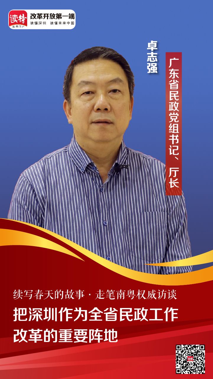 站在新征程的起点,卓志强对深圳民生事业的发展充满了信心,他说:“我期望深圳以改革破解民生难题、以发展增加民生福祉,致力打造民生幸福标杆、提高人民生活品质,为全省民政事业高质量发展提供示范,创造出更多的深圳民政经验。”