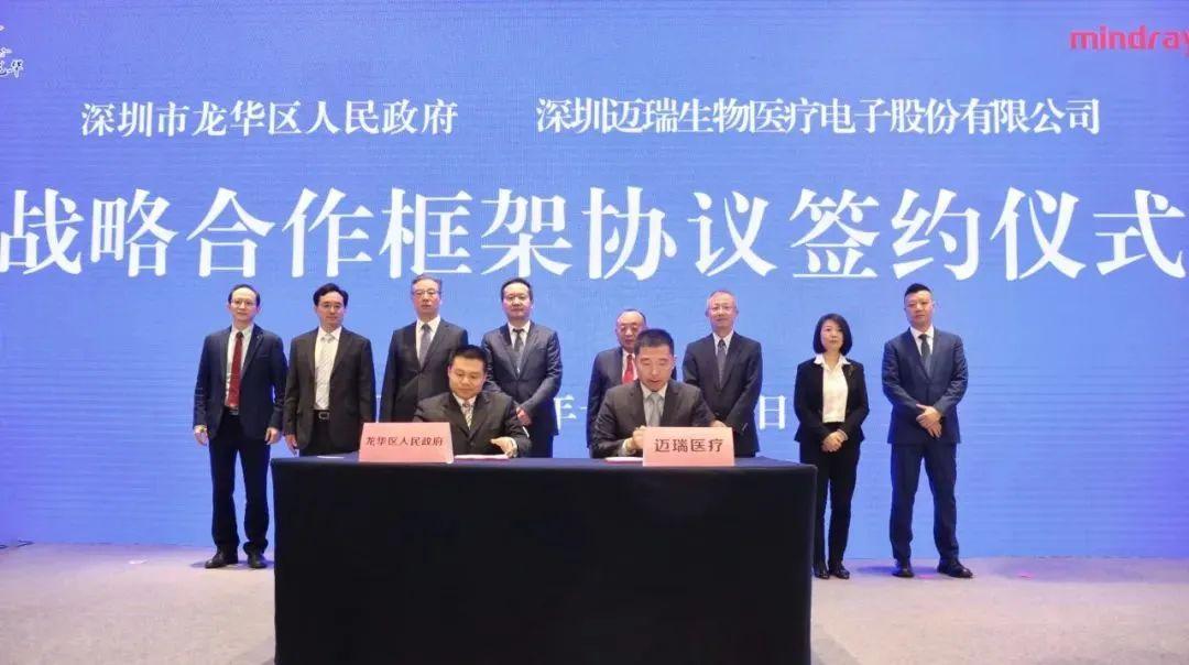12月7日上午,龙华区人民政府与深圳迈瑞生物医疗电子股份有限公司签署战略合作框架协议,双方将建立长期稳定的战略合作关系,深入开展动物医疗设备领域合作,实现互惠共赢。龙华区委书记王卫,区委副书记、代区长雷卫华,区领导韩荡、邓艳东、陈建民,迈瑞医疗董事长李西廷、副董事长成明和、总裁吴昊等出席签约仪式。雷卫华、吴昊分别代表双方签约。