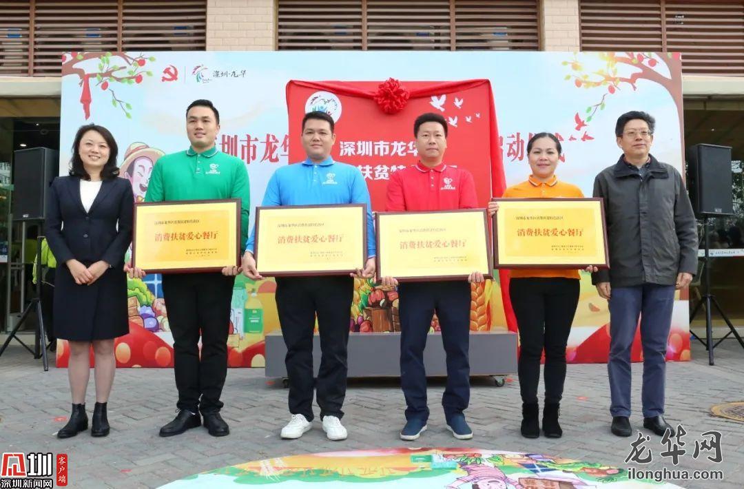 随后,参加仪式的市、区领导为消费扶贫特色街区揭牌,参观了消费扶贫特色街区,并详细了解扶贫带贫机制。活动中,龙华建设公司被授予“消费扶贫爱心单位”牌匾,爱心扶贫超市被授予“区级消费扶贫中心”牌匾,紫金客家风味、东兰凤山特色美食、哈尔滨风情烧烤、1392爱心美食4家餐厅被授予“消费扶贫爱心餐厅”牌匾。