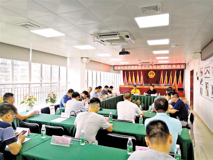 观澜街道查违办高度重视农村城市化历史遗留产业类和公共配套类违法建筑处理工作,将历史遗留违法建筑确权处理工作抓早抓实,摸清家底,深挖潜力,创新服务,通过走访、座谈等形式动员申报人和相关业主积极参与处理工作,并在各社区显著位置张贴宣传海报,向群众公开宣传处理政策。同时,专门组织力量协调城建、水务、土整、社区等部门,跟踪、配合、服务,一环紧扣一环,确保重点保障落实到位。目前观澜共计完成约38.7万平方米历史违建的三规处理,处理量位居全市各街道第一。