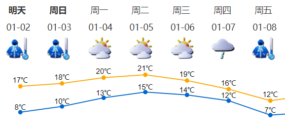01天气寒冷,注意防寒保暖明后两天早晚仍然寒冷,目前我市寒冷黄色预警仍在生效中。大家注意防寒保暖,尤其是小孩、体弱和老人要做好防寒措施、预防心脑血管等疾病。市、区两级救助站、市区社会福利中心避寒场所开放,有需要的市民可前往,地址及联系电话可通过12345电话查询;
