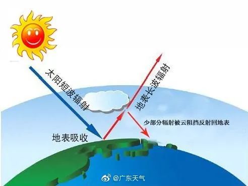 到了晚上,就是辐射降温的主场了。太阳下山后,地面的热量就开始往外散,如果云被子还在的话,它就能阻隔热量逃出地球,从而使得温度不会下降的太多。如果晚上没有这层云被子,辐射降温这个boss就会出现,温度会持平甚至下降。