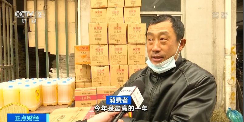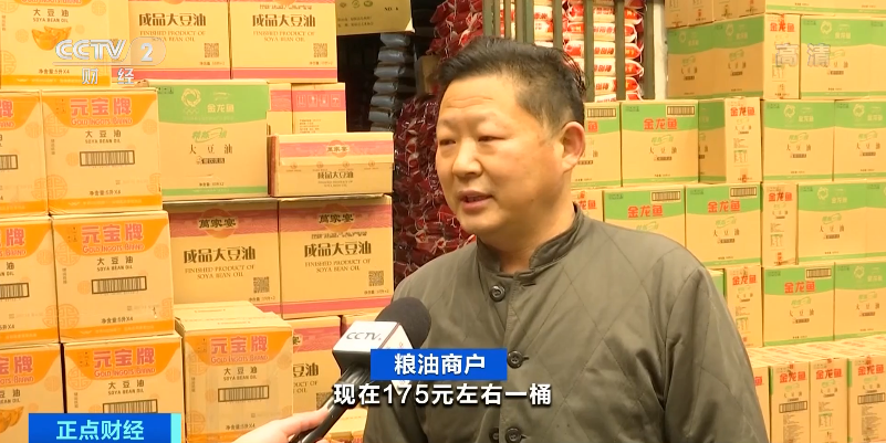 粮油商户:上半年120多元一桶,现在一桶175元左右,一桶比上半年涨幅近50%。