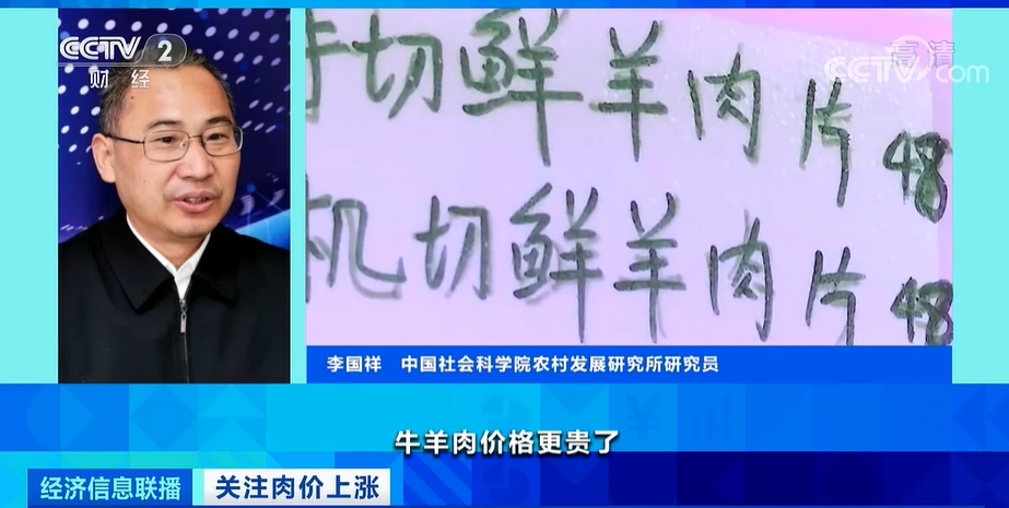 中国社会科学院农村发展研究所研究员李国祥:猪肉价格上涨之后,牛羊肉价格更贵了,牛羊肉热量含量高,更适合御寒,所以在更替的时候牛羊肉消费更加旺。