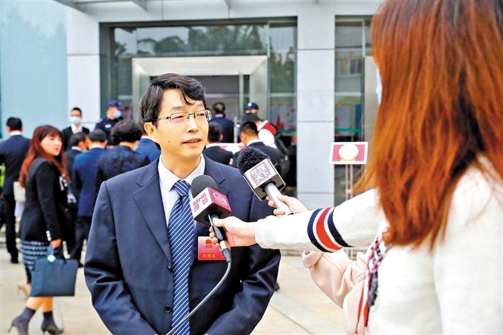 区人大代表接受媒体采访。 记者 蔡维泽 陈建华 通讯员 连志远 摄