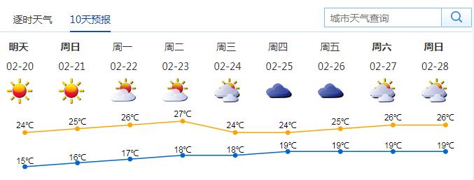 19日晴天干燥,早晚清凉,白天舒适,气温15-24℃;东风3级,沿海、高地和海区阵风5-6级;相对湿度30%-75%;