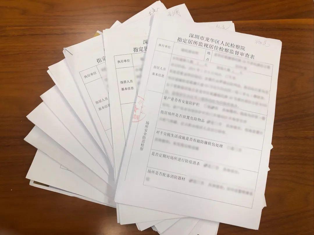 目前龙华辖区指居场所分布广,指居人员数量多,为全面履行刑事执行检察职能,我院与龙华公安分局构建指居信息互通机制,由龙华公安分局每月将指居人员的基本信息、诉讼阶段、执行时间及地点、责任民警等信息通报我院,以制度托底打通“监督路径”。采取清单式监督模式,制作《指定居所监视居住检察监督审查表》,将指居执行监督工作中的各个要点细化为3大类20小项,在开展监督时逐一对照检察并制作工作记录,全程留痕,实现对指居执行的精细化、流程化监督。