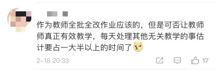 值得注意的是,对于杜绝要求家长批改作业,评论区中教师们的声音也不能忽视:“一线老师太难了!能保证老师的8小时睡眠吗?”