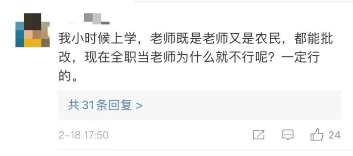 “我小时候上学,老师既是老师又是农民,都能批改,现在全职当老师为什么就不行呢?”