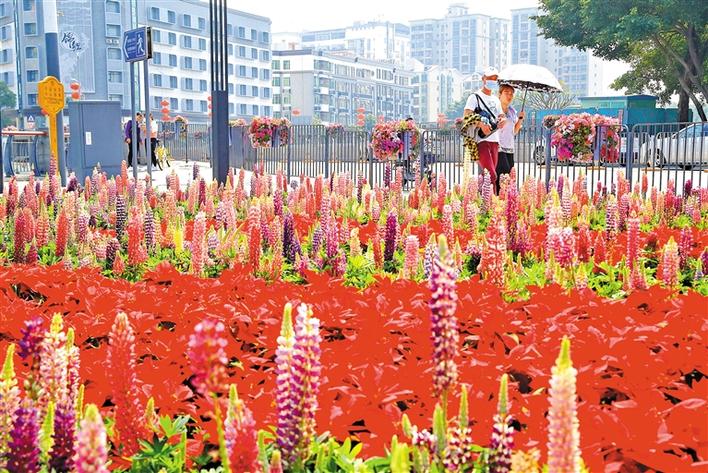 春意盎然的景澜路街心公园,羽扇豆正随心所欲地绽放着多彩风姿,粉的、紫的、黄的,一簇簇、一片片,迎着阳光,肆意绽放。