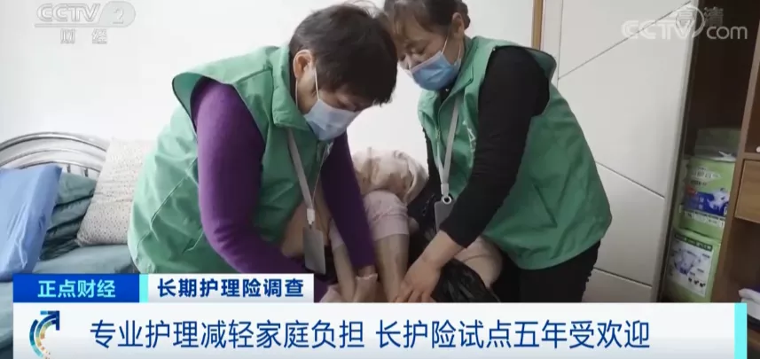江苏南通的沈桂英今年97岁,2017年因为摔了一跤导致骨折,卧床不起。她的女儿沈年英一直在家照顾,但是她自己也快70岁了,有时候也力不从心。不久后,她听说母亲可以申请长期护理险,便去了当地医保局,工作人员上门了解后,给她母亲重度失能的评级。在此之后,专业的护理人员每周都会来三到四次,对她母亲进行专业护理。