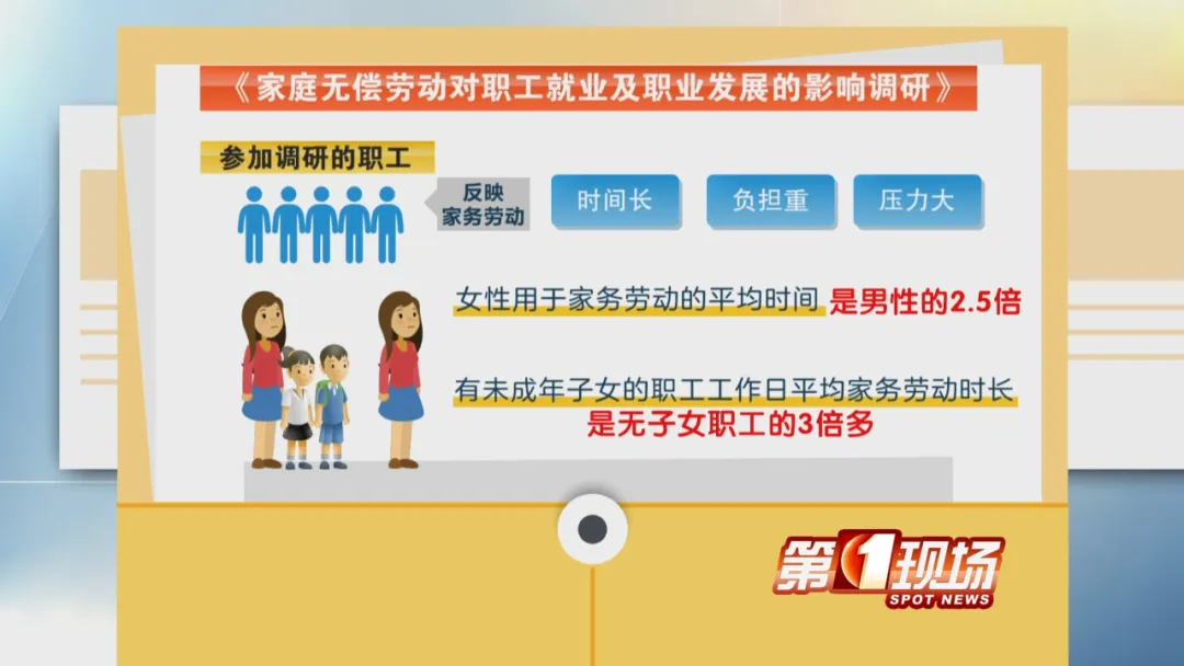 深广电第一现场2021年3月11日讯 近日,一份来自全国总工会女职工委员会,组织开展的调研显示,女性做家务时间是男性的2.5倍。