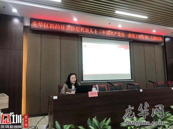 见圳客户端·深圳新闻网讯( 记者 卢东勃)3月12日下午,龙华区举行新的社会阶层代表人士《中国共产党统一战线工作条例》专题培训。此次培训邀请区委党校谢煜博士为大家授课,区新联会会领导班子成员、理事以及会员代表约50人参加此次培训。