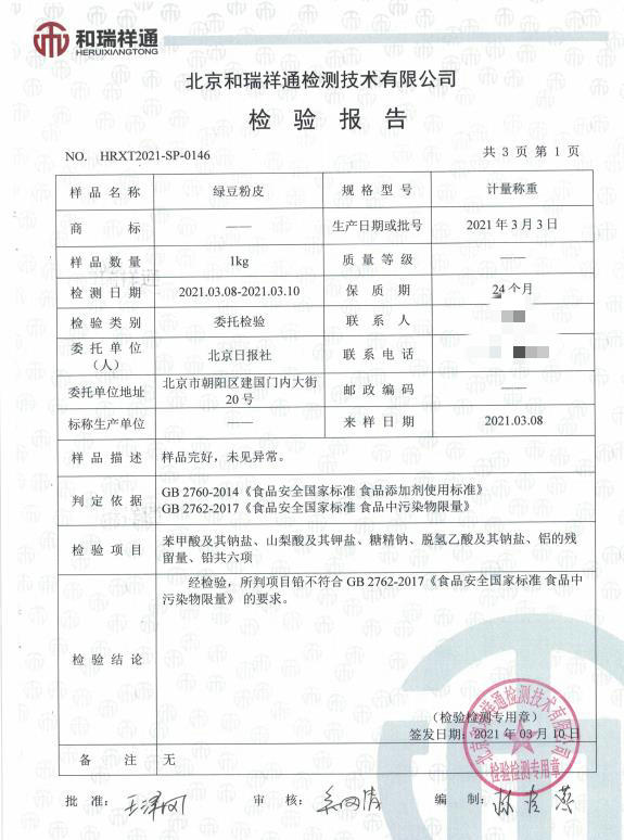 王泽凤介绍,铅是一种对人体有害的金属元素,可通过消化道及呼吸道进入体内,是一种慢性和积累性毒物。进入人体后,少部分会随着身体代谢排出体外,大部分会在体内沉积,危害人体健康。重金属污染可在食品生产,农作物种植、动物饲养、加工、包装、贮存到运输、销售,直至食用等过程中产生,或由环境污染带入。据他分析,绿豆粉皮的原材料、生产器具等都有可能存在铅污染。