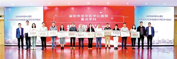 龙华区中心医院在重点学科2020年总结报告会上为该院市重点学科、区重点学科及区重点学科建设单位颁牌。