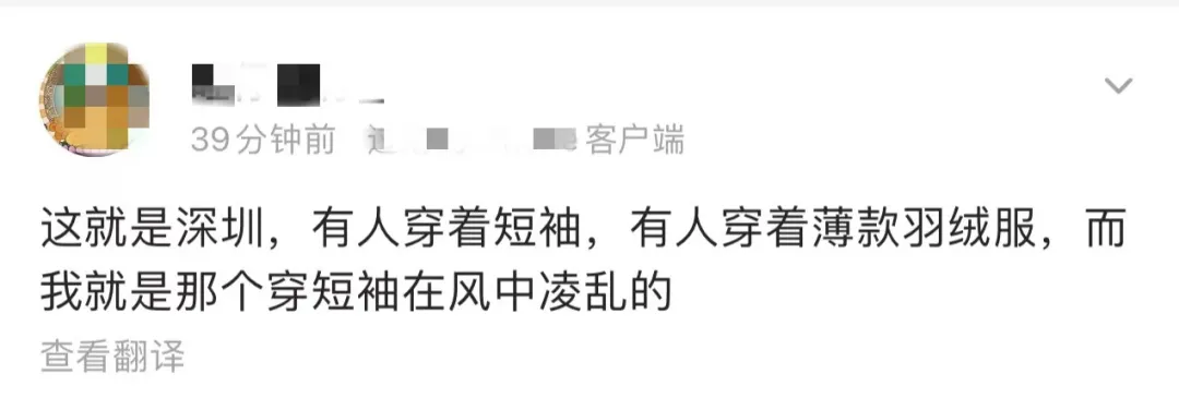今天周一,想必小伙伴们都感受到了凉意,穿几件上班的啊? 深圳三月的天呐,真是说变就变……前两天还是这个画风↓↓↓ 而今天↓↓↓ 你们预订的冷空气套餐正式到货!还是促销价,满30-15哦~ 受冷空气影响,昨天深圳大部分时间阴天,部分地区有零星小雨,气温明显下降,3月21日傍晚气温仅16-17℃!,深圳市气象台在昨天14时20分发布全市强季风蓝色预警。 预计我市沿海、海区和高地阵风将达到8级以上! 信号可能从昨天下午持续到22日下午。 这风大到啥程度呢? ↓↓↓ 不过有人却很享受今天的大风天气 并表示大风和周末更配哦(适宜睡懒觉) 问题来了,冷空气到底会来几天呢? 不好意思只来两天。所以,请珍惜这短暂的凉爽时光吧。 天气预报 3月21日夜间至22日上午,深圳市阴天间多云,有零星小雨。 3月22日早晨最低气温降至14-15℃,沿海、高地和海区最大阵风7-8级,体感较凉。3月22日午后转多云,风力减弱。 3月23-28日多云间晴天,气温逐日回升,天气再趋温暖湿润。 温馨提示 3月21日傍晚至22日上午沿海、高地和海区阵风7-8级,北风强劲,市民需注意收拾好临窗和阳台物品,尽量减少滨海旅游和海上活动。 3月22日早晨深圳市部分地区仍有零星小雨,市民出门注意携带雨具,雨天道路湿滑,驾车注意交通安全。 全市森林火险黄色预警生效中,空气干燥,注意森林防火和居家用火用电安全。 来源:深圳天气、微博网友