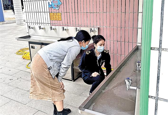 卫生监督员重点检查学校供水设备等,确保学校饮用水卫生安全。