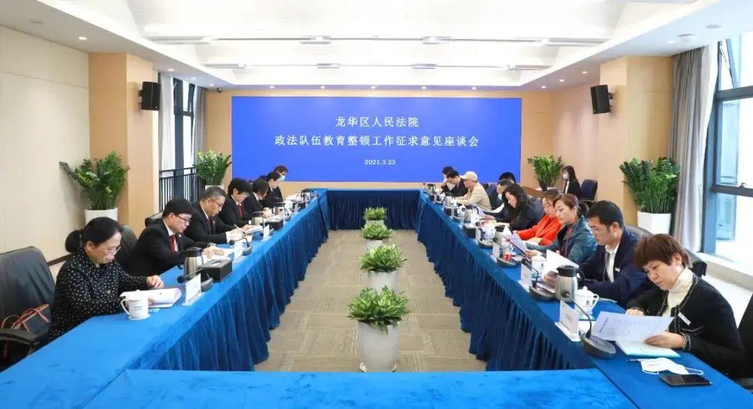 深圳龙华法院在四楼集控中心组织召开政法队伍教育整顿工作征求意见座谈会,邀请人大代表、政协委员、特约监督员、律师代表、人民陪审员代表、调解员代表等参加座谈会。