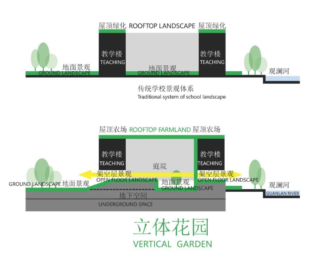 屋顶作为绿色菜园,班级园地等功能得到更好的利用性和可达性。
